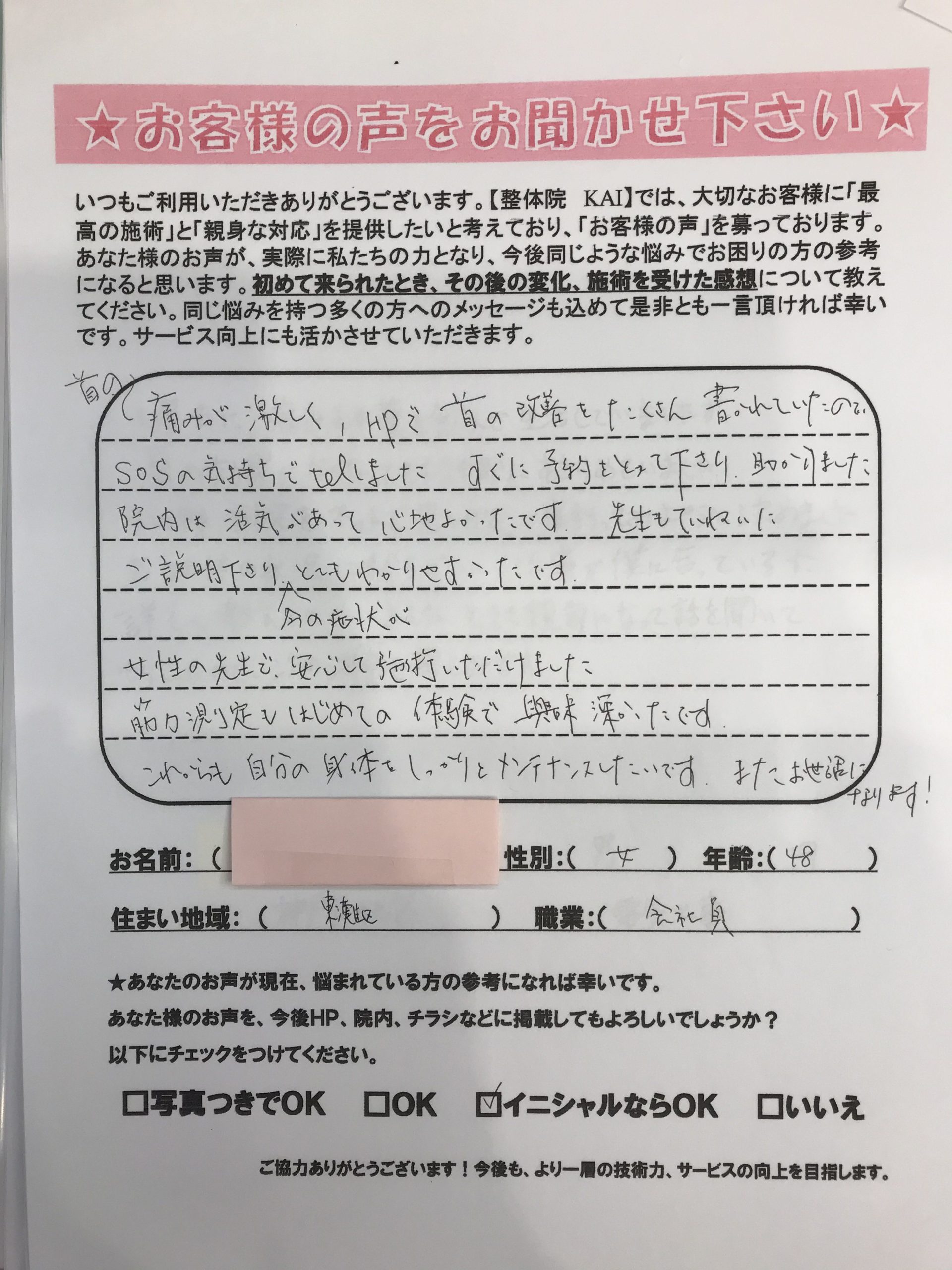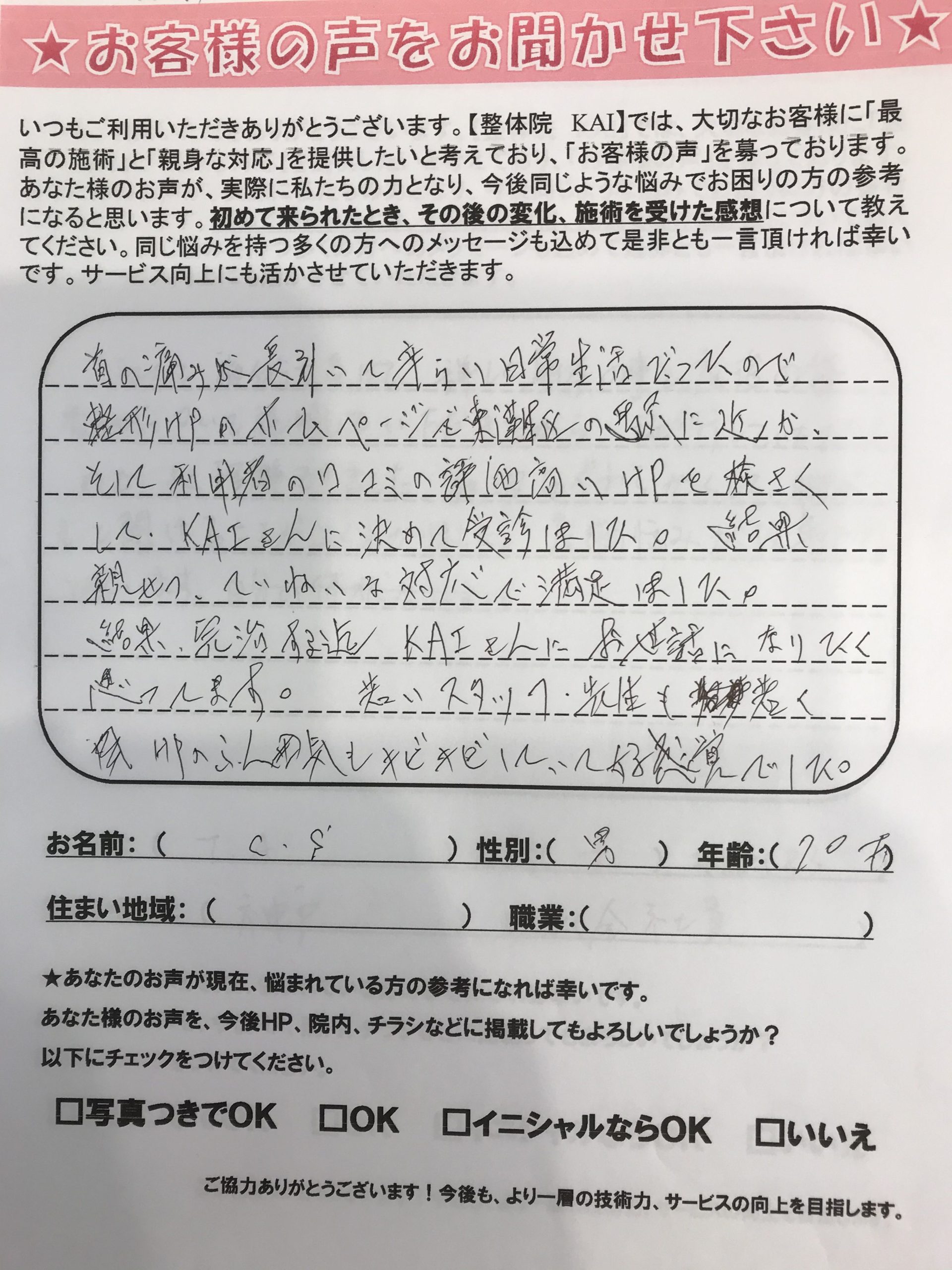 東灘区の整骨院KAI、お喜びの声